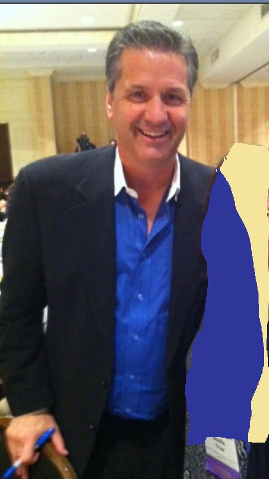 Below is another example. I happened to find myself at a luncheon where the speaker was none other than U.K. Basketball Coach John Calipari. Someone asked me to take her photo with him. I did so, but kept a copy for myself. Note how I skillfully cropped the offending bystander while keeping Coach Cal properly centered. With a little computer magic, I deftly doctored the photo to remove all traces of the other person.